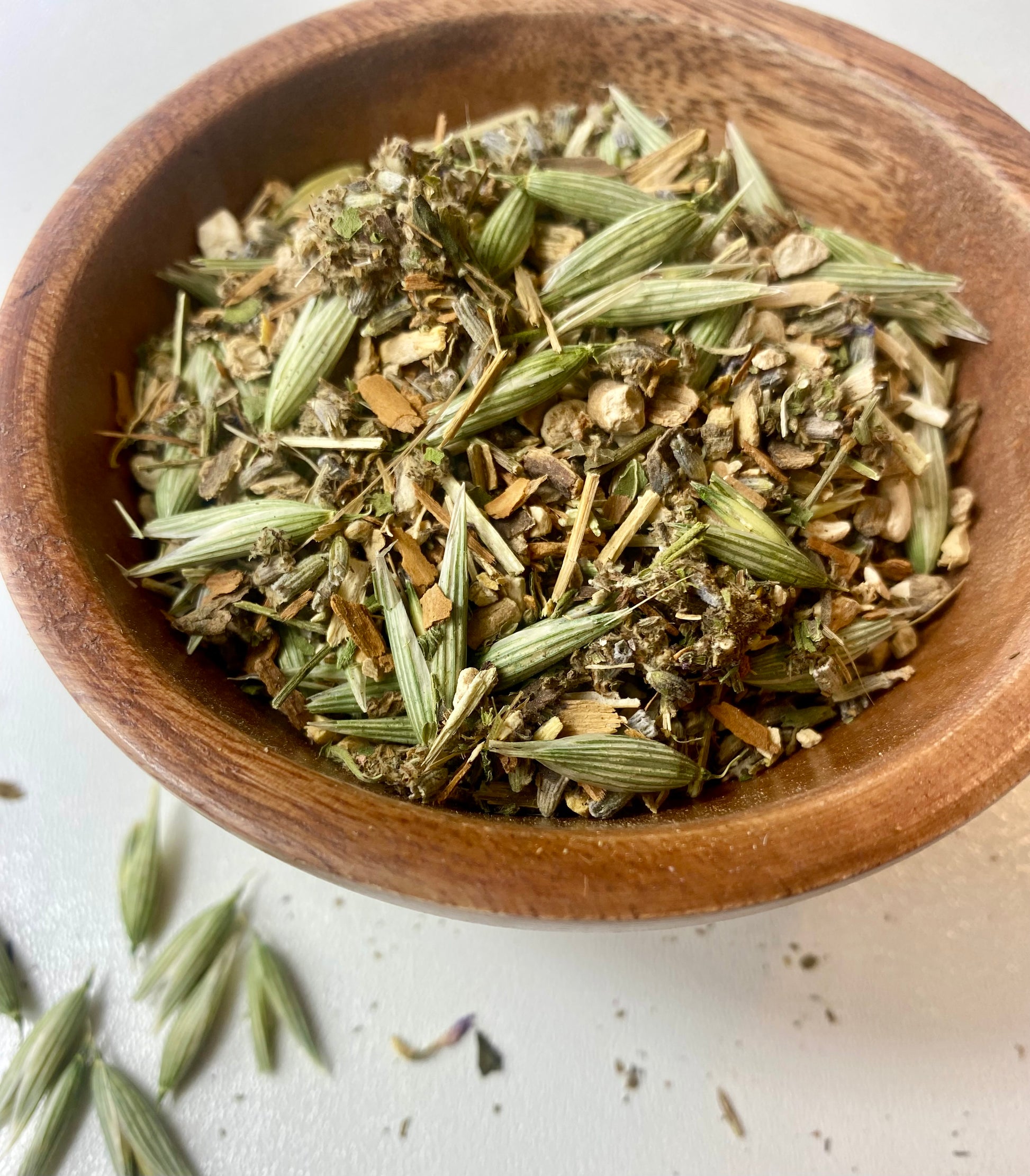 This soothing blend of herbs was crafted to nourish and support your nervous system to help you sleep better over time. If you struggle with insomnia and need the heavy stuff, it pairs well with a hops or valerian root tincture.